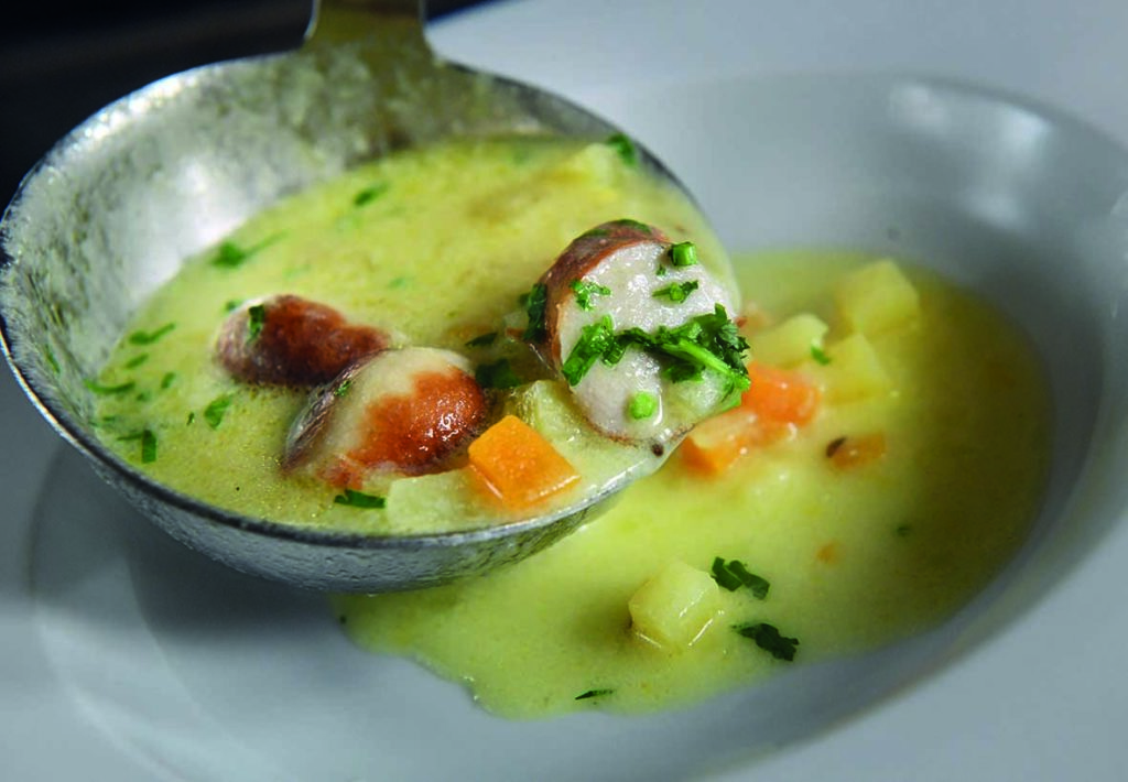 Zutaten: 4 Stk. Bratwürste 1 l Gemüsefond oder Kalbssuppe ¼ l Milch 50 g Butter 50 g glattes Weizenmehl 1...