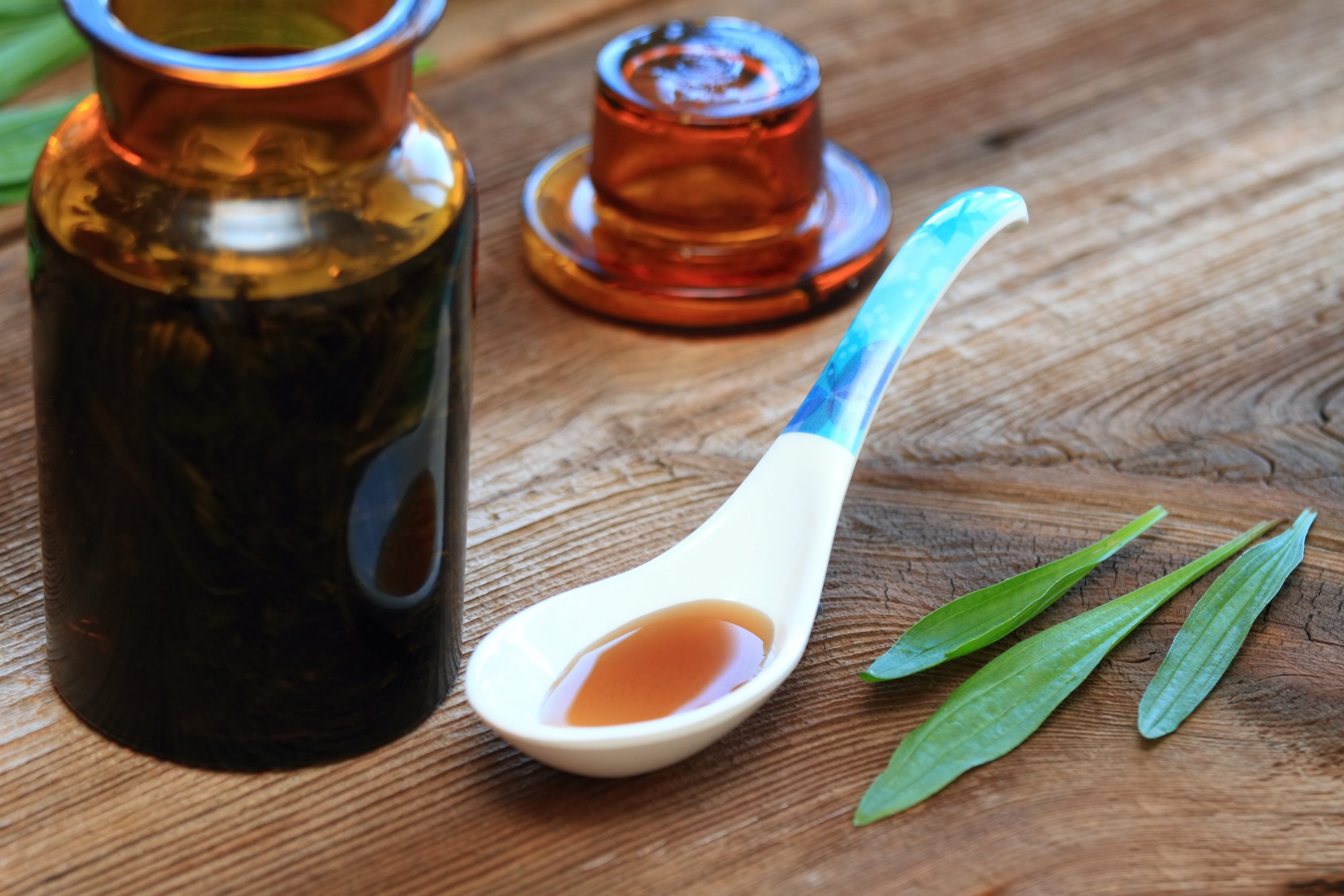 Altbekannt ist der Hustensirup aus Spitzwegerich: Dazu im Wechsel Honig und Spitzwegerich in ein Schraubglas füllen (jeweils 1 cm hoch) und 4 Wochen im Kühlschrank ziehen lassen.